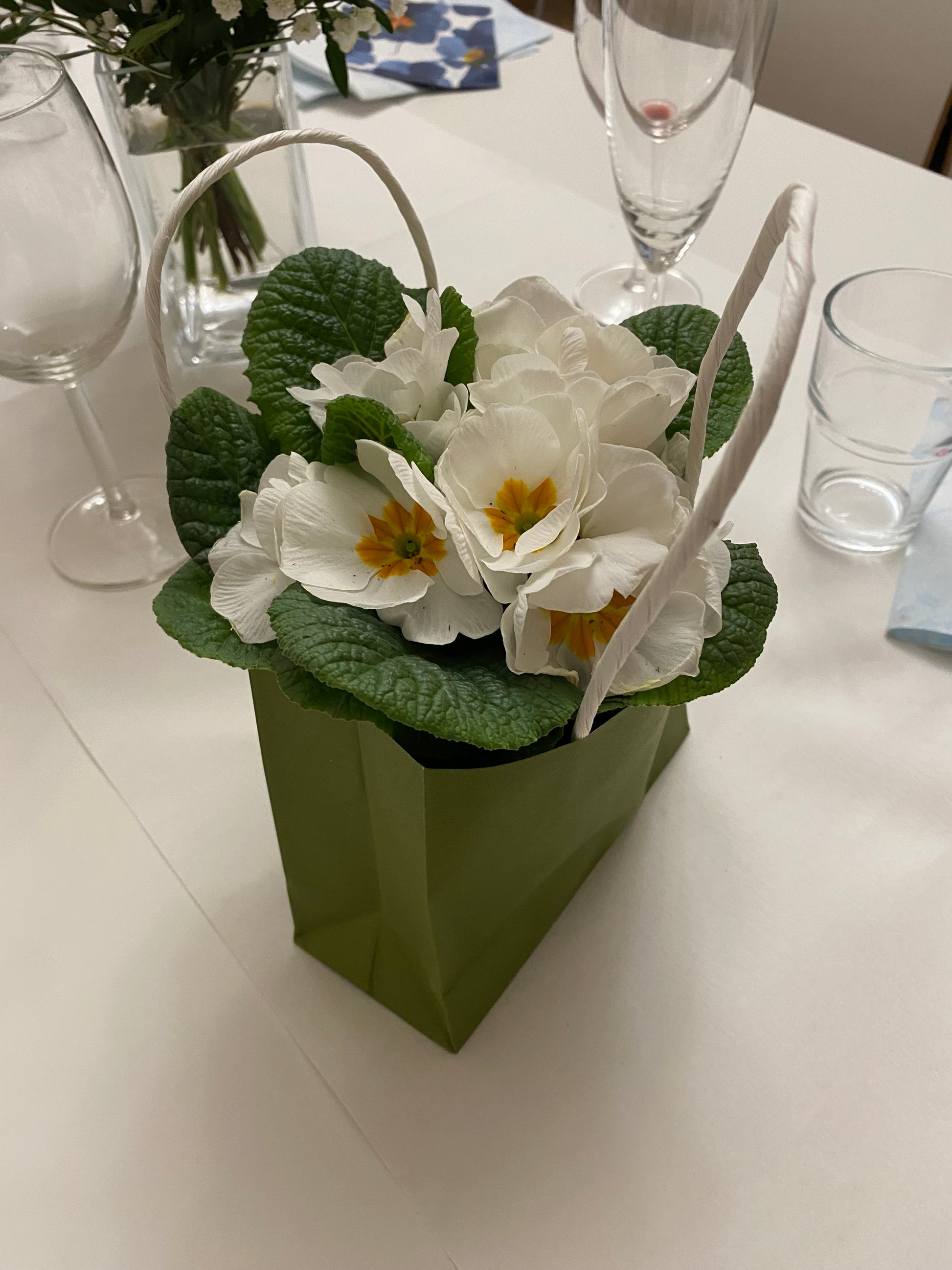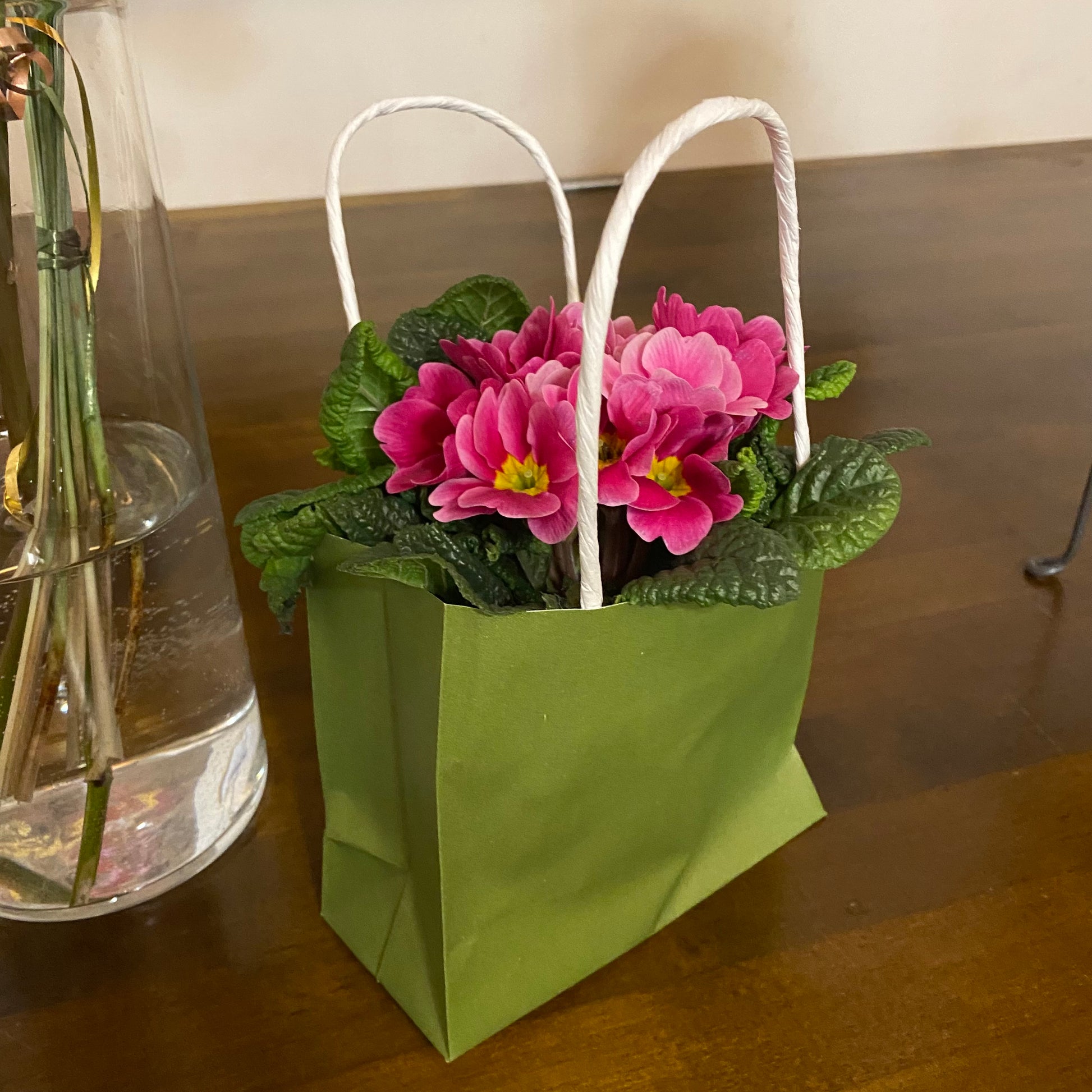 Pieni paperikassi kukille. Annatko kukkia lahjaksi? Tässä kätevä ja siisti tapa antaa kukat. Tai erittäin näppärä tapa laittaa ruukkukukkia juhliin koristeeksi.